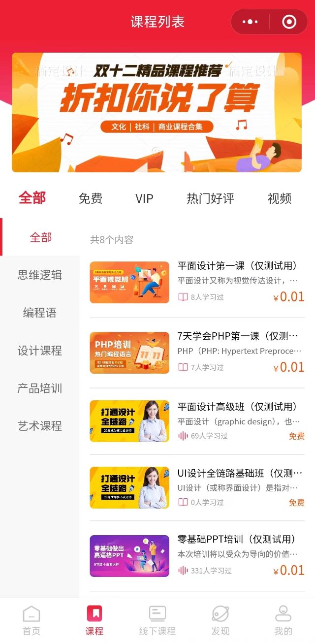 一款基于ThinkPHP+Uniapp开发的西陆教育系统(微信小程序、移动端H5、安卓APP、IOS-APP),支持线上线下课程报名,线上课程支持视频课程、音频课程、图文课程、课程在线支付。