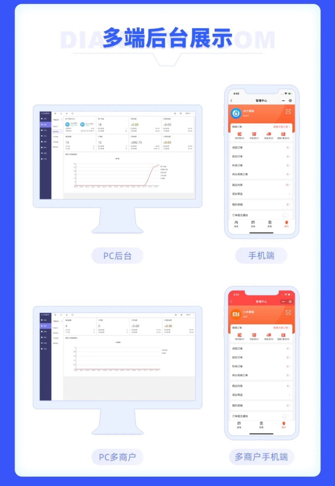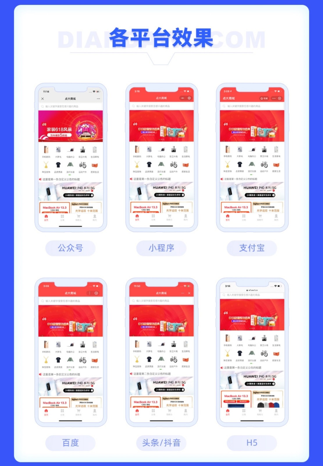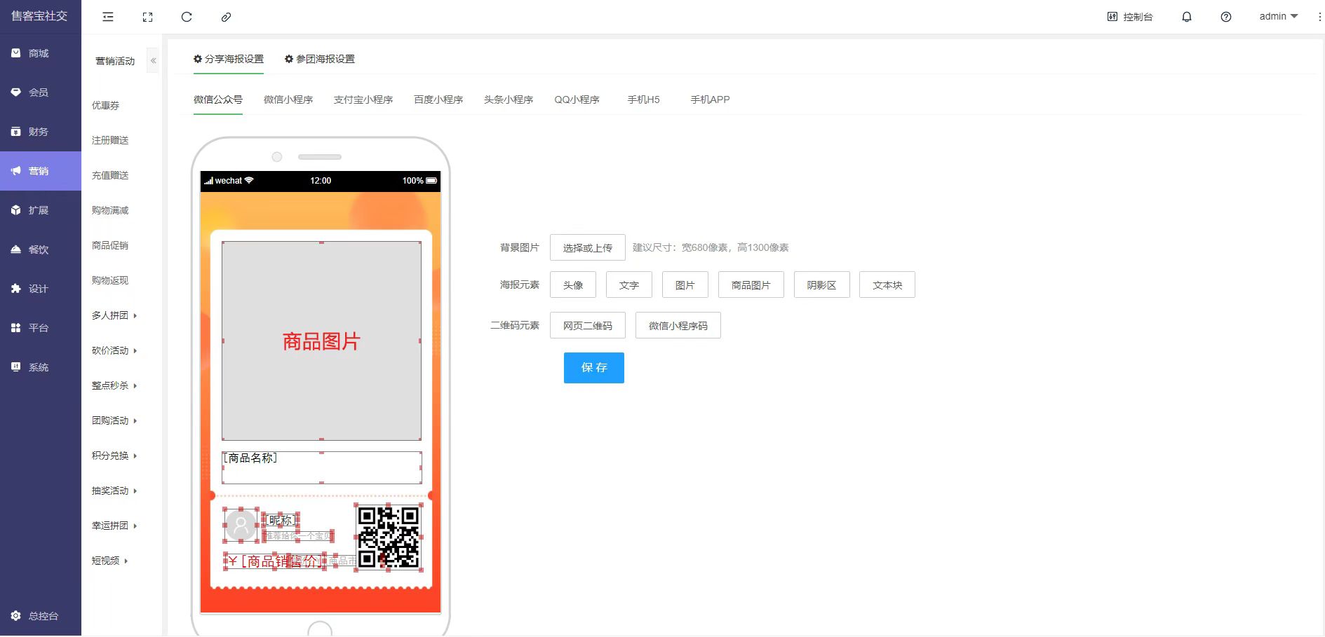 售客宝社交电商系统,覆盖多端展现(H5、微信公众号、微信小程序、头条小程序、百度小程序、支付宝小程序、QQ小程序、APP),海量营销策略供您选择(分红、分销,秒杀,拼团,砍价,优惠券,抽奖、积分等),为您提供数据、产品、运营、流量全方位赋能,助力企业构建私域流量进入品牌新时代!